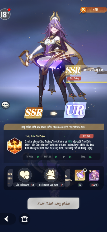 Điều đặc biệt ở đây là Nhà Thám Hiểm R, SR hay SSR hoàn toàn có thể nâng lên phẩm chất cao nhất là UR để mở khóa thêm kĩ năng cùng thăng tiến sức mạnh. Khi nâng phẩm, tất nhiên cần yêu cầu 1 lượng mảnh Nhà Thám Hiểm khá lớn và kèm theo 1 chút tài nguyên nhất định.
