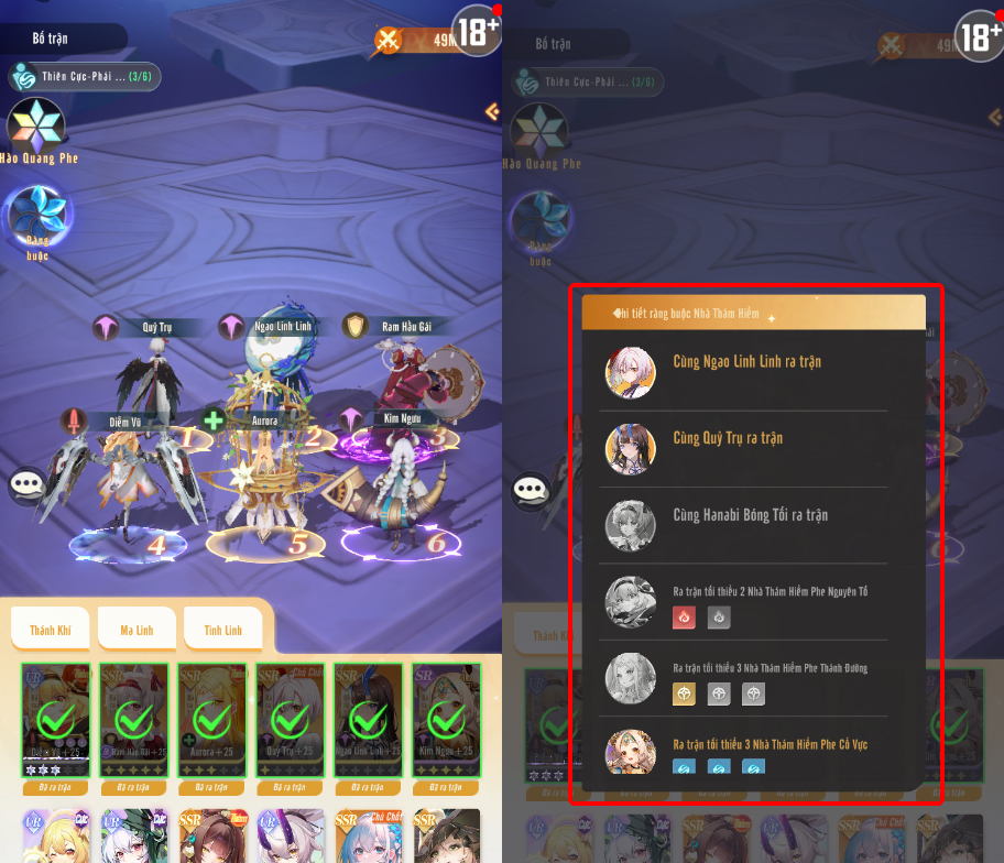 Ngoài xếp trận, Cơ trưởng có thể tùy chính Thánh Khí, Ma Linh và Tinh Linh, các chức năng này bổ trợ trực tiếp vào trận đấu và sẽ mở khóa dần theo tiến trình người chơi.
